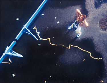 Our surface was to be a graphic element as was our runner, crowd-control horses, finish line ribbon, cups and selected wet spots...all part of our canvas. The twist to our location was the pouring of asphalt, so it would be strong enough to walk on, and to shoot before the Park District painted parking lines. This gave us about a two-day window. Foremost keeping my shoot date in mind, I played hopscotch... navigating the list of suggested parking lots that were large enough for us and were scheduled to be resurfaced by the Park District. The crane, horses, props, and ‘runner’ was organized concurrently with the days of the location scouting. We always bring the “studio away from studio” equipment for any emergency short term needs.