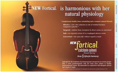 Art Director, Jaime Flores of Goble & Associates awarded us a project to work on which was a real thing of beauty. The shot was for an incredible product called Fortical, which is a nasal spray that helps women fight bone loss. Our casting challenge was to find a female model that when seated, her back view was statuesque and replicated the strength and beauty of a cello. The design of the neck and strings of the cello were to become one with the woman's vertebrae. We had called talent agencies requesting composites of female models of the correct age range and body structure. Length or color of their hair was unimportant, as we decided to go with a short wig. After making our initial composite selections, the talent came to an on- camera casting at our studio. Wearing bathing suits, the models individually sat down with their backs to us for a casting photo. When the casting session was completed we sat down with Jaime and reviewed each and every choice. The body had to be a perfect fit. We photographed the model talent and cello separately on the same color background, which was then composited by Jaime and the agency. The result was this wonderful image, wonderful ad and truly a thing of beauty so beautiful that the ad agency has made it one of several "art pieces" that hang on their agency walls.